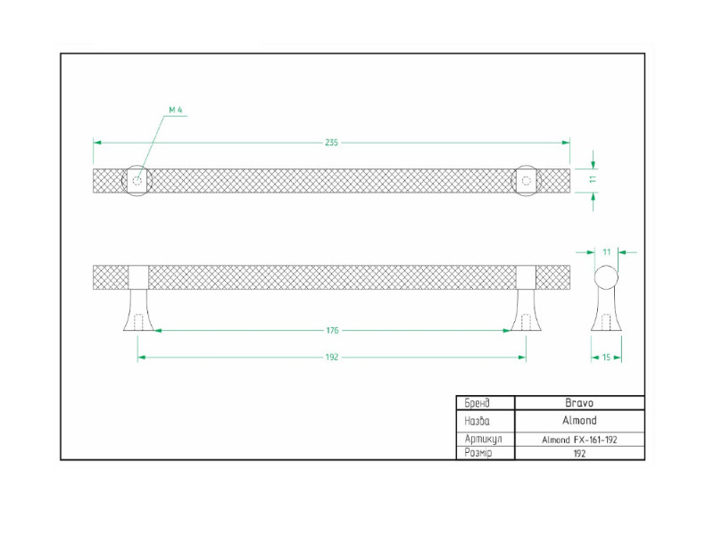 0.00 грнРучка Bravo Almond 192 мм темное золото FX-161-192-110