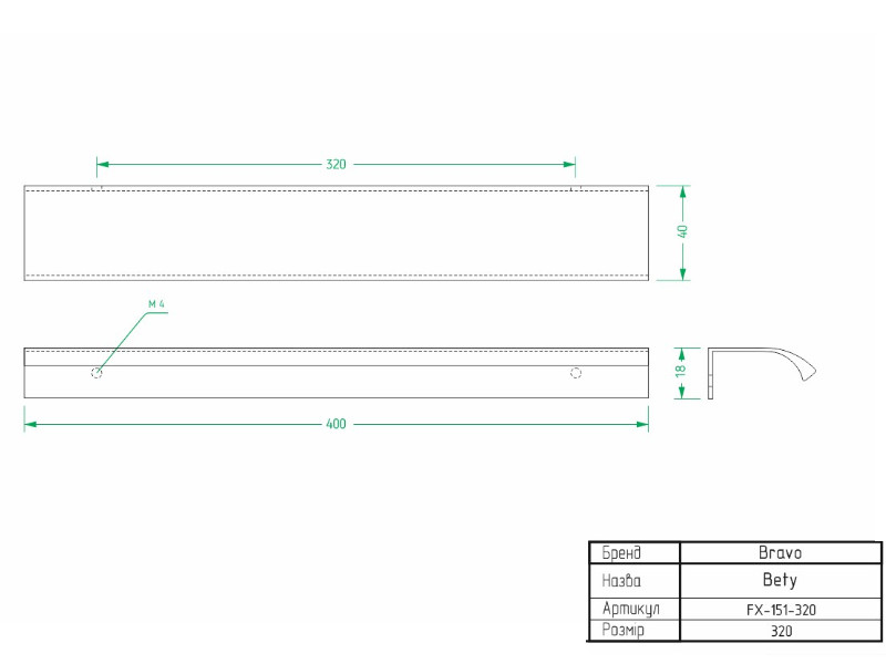 - Довжина, мм: 400