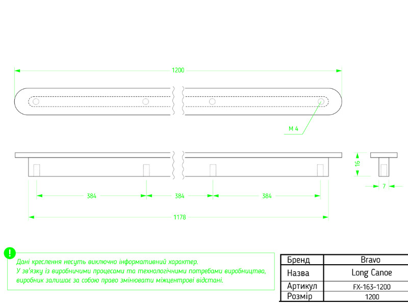 - Довжина, мм: 1200