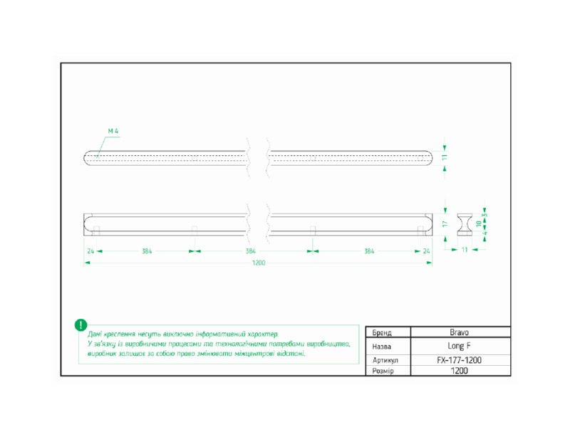 - Довжина, мм: 1200