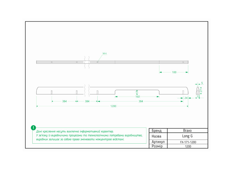 - Длина, мм: 1200