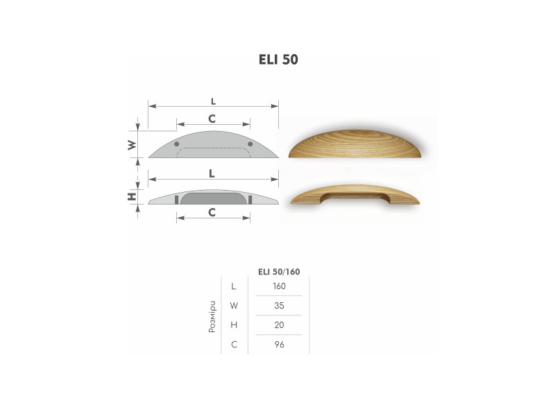 Ручка дерев'яна ELI 50/160 ясень WHITE