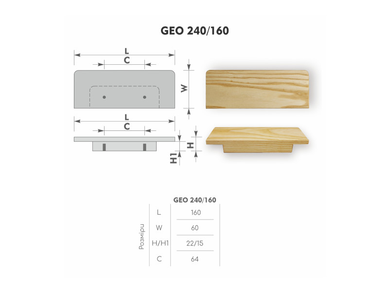 Ручка дерев'яна GEO 240/160 ясень WHITE