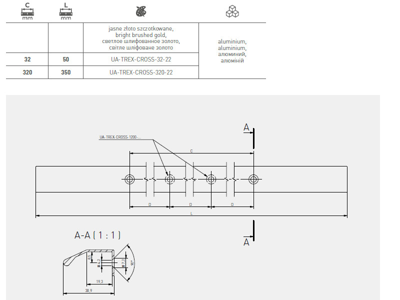 TREX-CROSS - це нова серія ручок, присвячена сучасному дизайну інтер'єру. Вони характеризуються тонко вигнутою і закругленою на кінці ручкою, що робить колекцію не тільки естетично привабливою, але й дуже практичною у використанні. Простий дизайн ручок TREX-CROSS дозволяє непомітно інтегрувати профіль у меблевий фасад. В результаті ручки не домінують над загальним дизайном, а гармонійно поєднуються з дизайном і стилем меблів, що робить їх ідеальними для сучасного дизайну інтер'єру, де мінімалістичний вигляд і непомітні деталі є ключовими факторами. Вона доступна в трьох універсальних колірних варіантах: білому, чорному та світлому матовому золоті. У стандартному виконанні колекція доступна в трьох розмірах: 32 мм, 320 мм і 1200 мм.