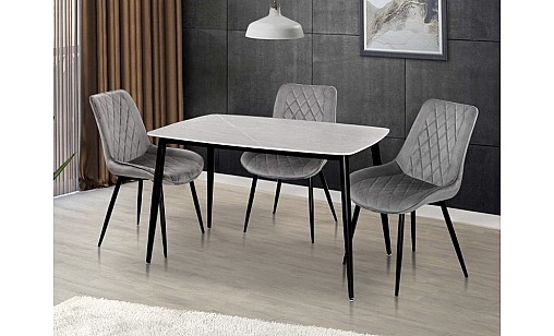 Стол обеденный КИПАРИС 1200*800*760 серый мрамор/черный