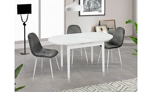 Стол обеденный ТИТАН 1100(1400)*750*760 белый мрамор/белый
