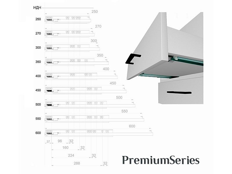0.00 грнТандем частичного выдвижения с доводчиком Clip-on L-400мм 16мм ДС ПремиумЛайн