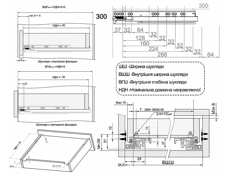 0.00 грнТандем полного выдвижения с доводчиком Clip-on L-300мм 18мм ДС ПремиумЛайн NEW