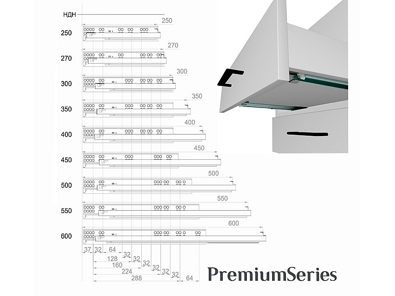 0.00 грнТандем полного выдвижения с доводчиком L-500мм16мм ДС ПремиумЛайн