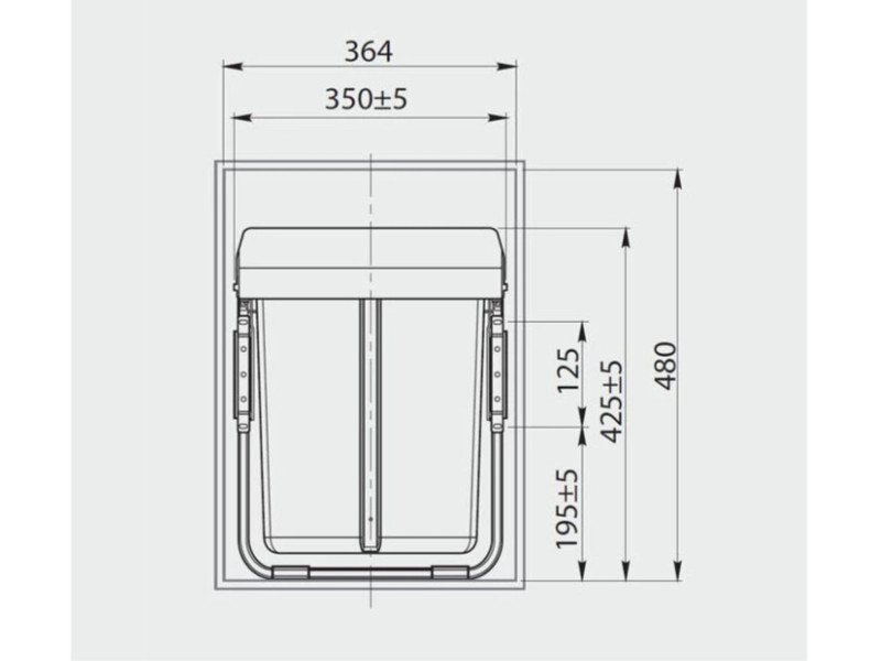 0.00 грнВедро для мусора PRACTI ECO с креплением к фасаду 400 мм 20 л 2x10 л, антрацит GTV PB-45-MF202X10-60A