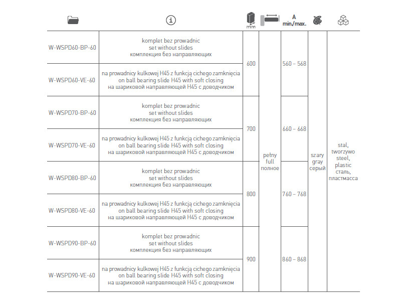 0.00 грнВешалка для брюк 700 мм (без направляющих) графит W-WSPD70-BP-60 GTV
