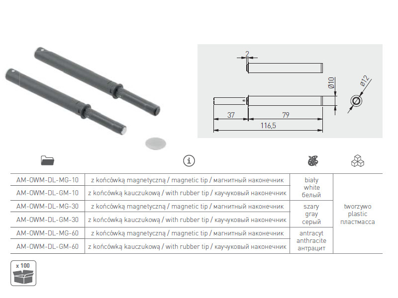 Штовхач - універсальна система для відкривання ящиків та фасадів меблів без ручок, є інноваційним і зручним рішенням. Його особливості забезпечують максимальну ефективність та гнучкість у використанні зі стандартними петлями та напрямними. Це робить його чудовим вибором для сучасних трендів у дизайні меблів, де відсутність ручок надає виробу стильного та мінімалістичного вигляду.