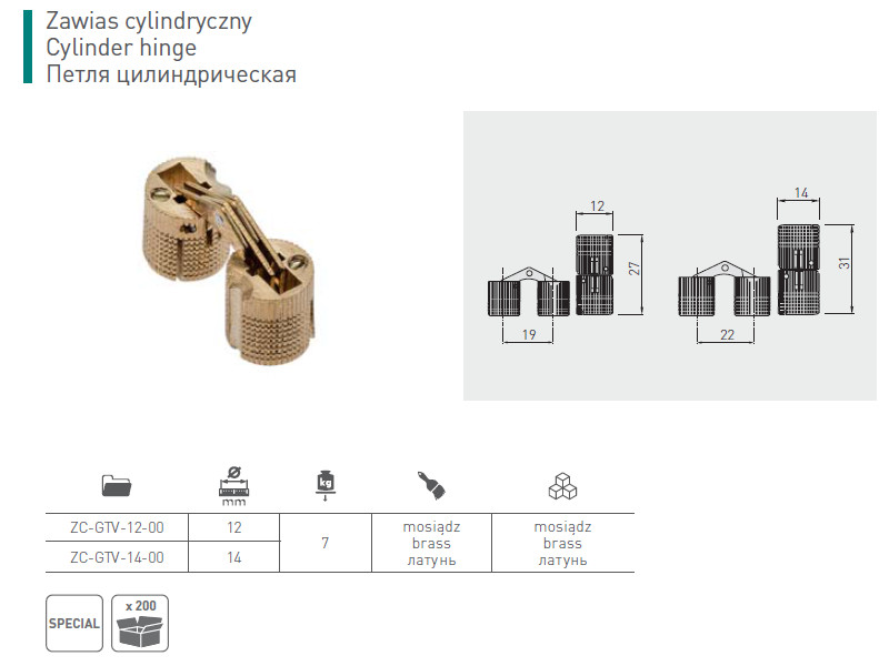Завіс циліндричний для столів 12 мм ZC-GTV-12-00 GTV