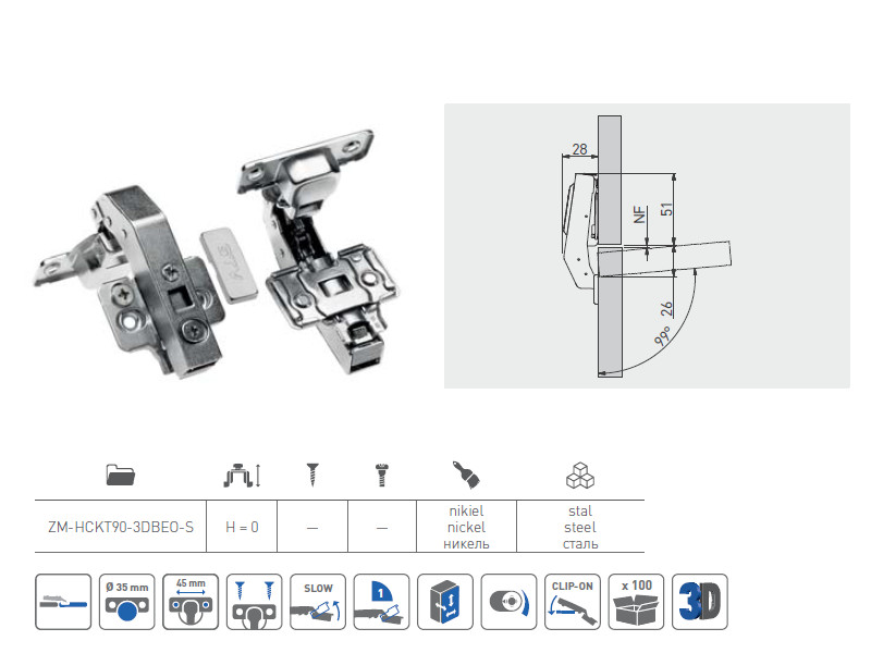 - Тип завіси: Врізна для ДСП і МДФ