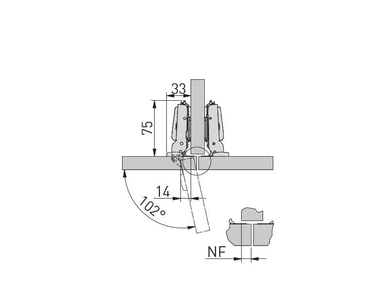 - Кут відкривання, градусів: 102°