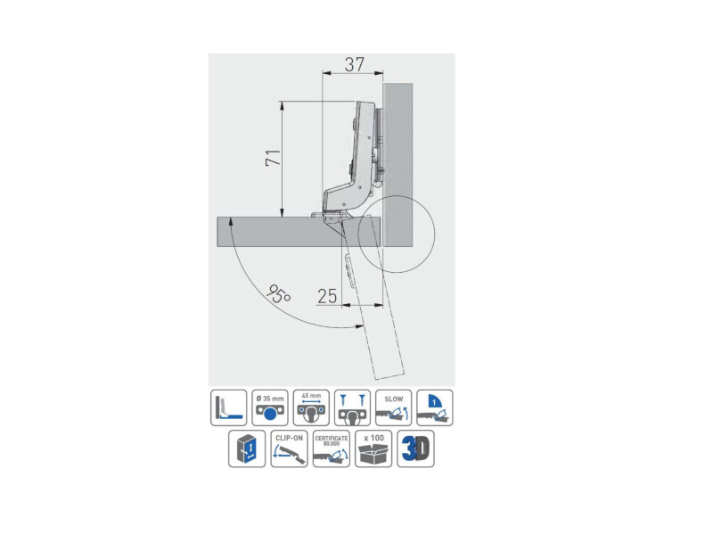 - Тип завіси: Врізна для ДСП і МДФ