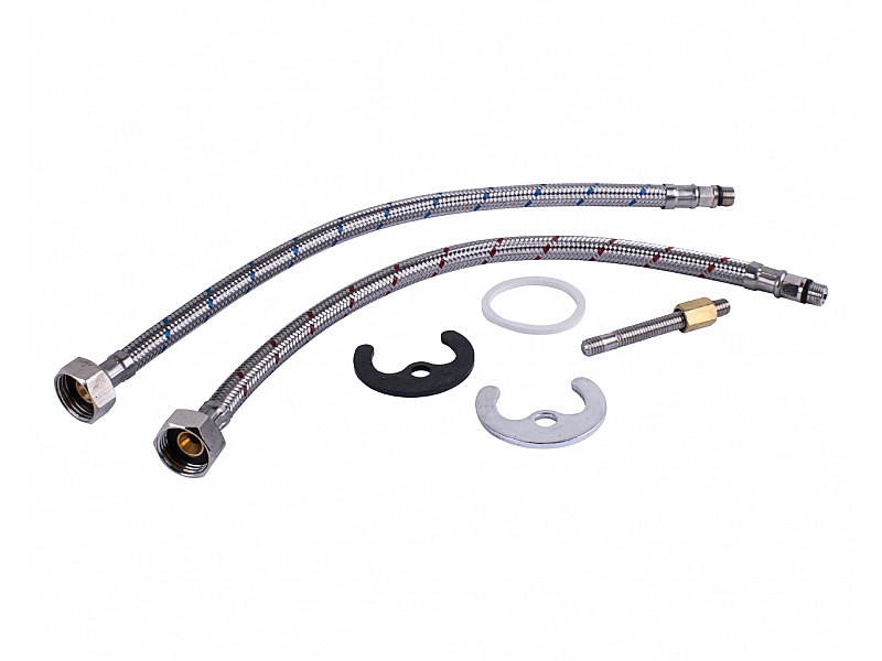 Комплектація виробу: Керамічний картридж, шланги підведення води, змішувач
